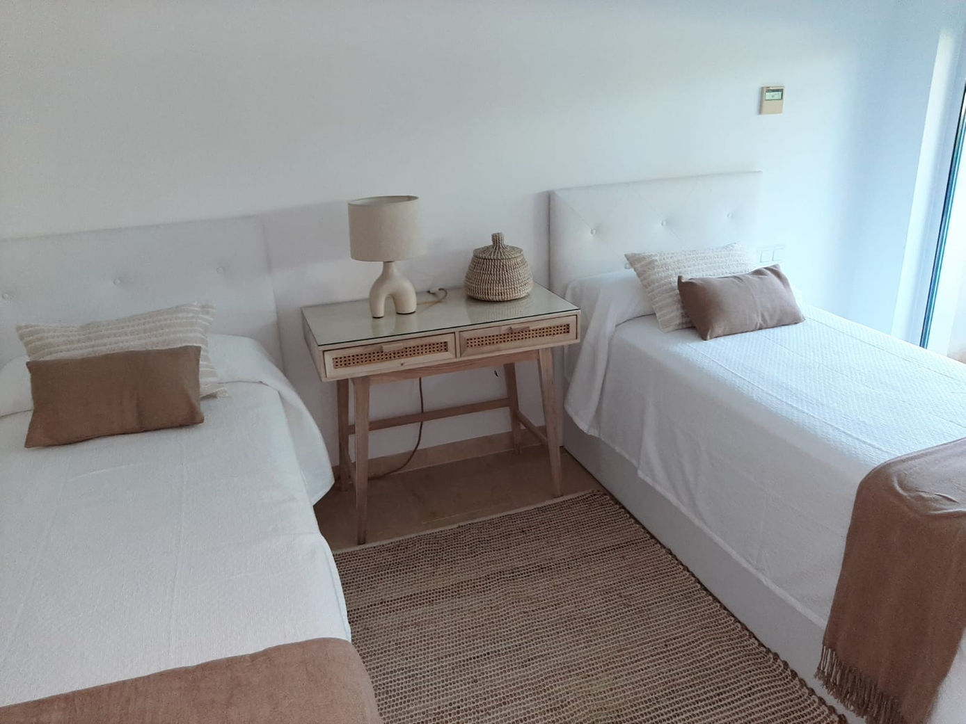 Fantastic suite with a queen-size bed (180x200), 42' TV connected to Internet, two sofas, a hallway full of cabinets. We offer different types of pillows, duvets, bedspreads and top quality towels and sheets. Additionally, we offer a set of towels for the pool and gym, paddle rackets, as well as a travel cot and other necessary material for babys. Private air-conditioned and underfloor heating will make your stay as confortable as possible. You can see the pool from your bed while watching the latest episode of your favorite series.
